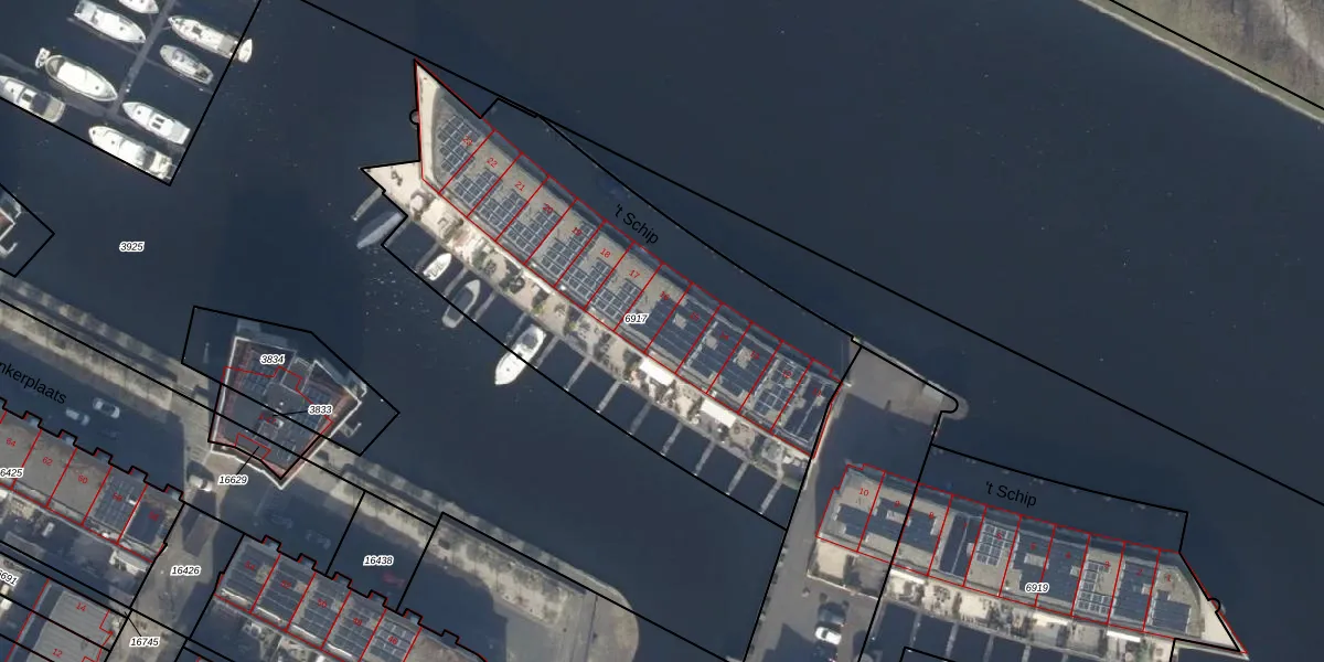 't Schip 15 is gelegen op kadastraal perceel KWK01B6917. Deze kadastrale aanduiding is uniek en wordt gebruikt door het Kadaster om eigendomsrechten en andere zakelijke rechten vast te leggen. Het perceel maakt onderdeel uit van de kadastrale gemeente Katwijk.