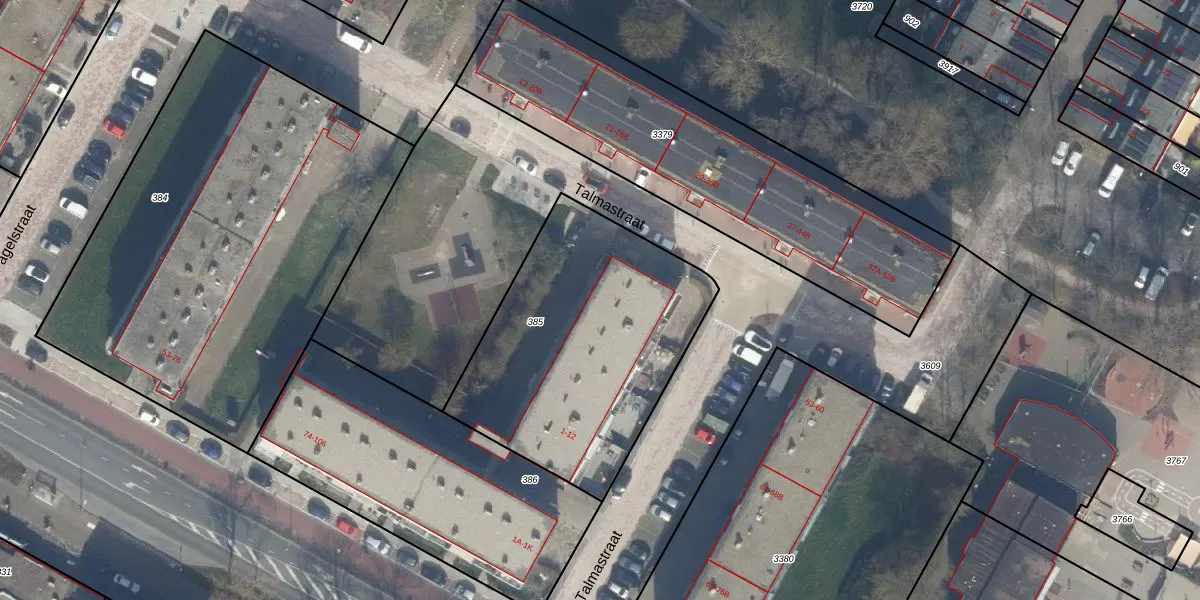 Talmastraat 4-B is gelegen op kadastraal perceel KWK01C385. Deze kadastrale aanduiding is uniek en wordt gebruikt door het Kadaster om eigendomsrechten en andere zakelijke rechten vast te leggen. Het perceel maakt onderdeel uit van de kadastrale gemeente Katwijk.