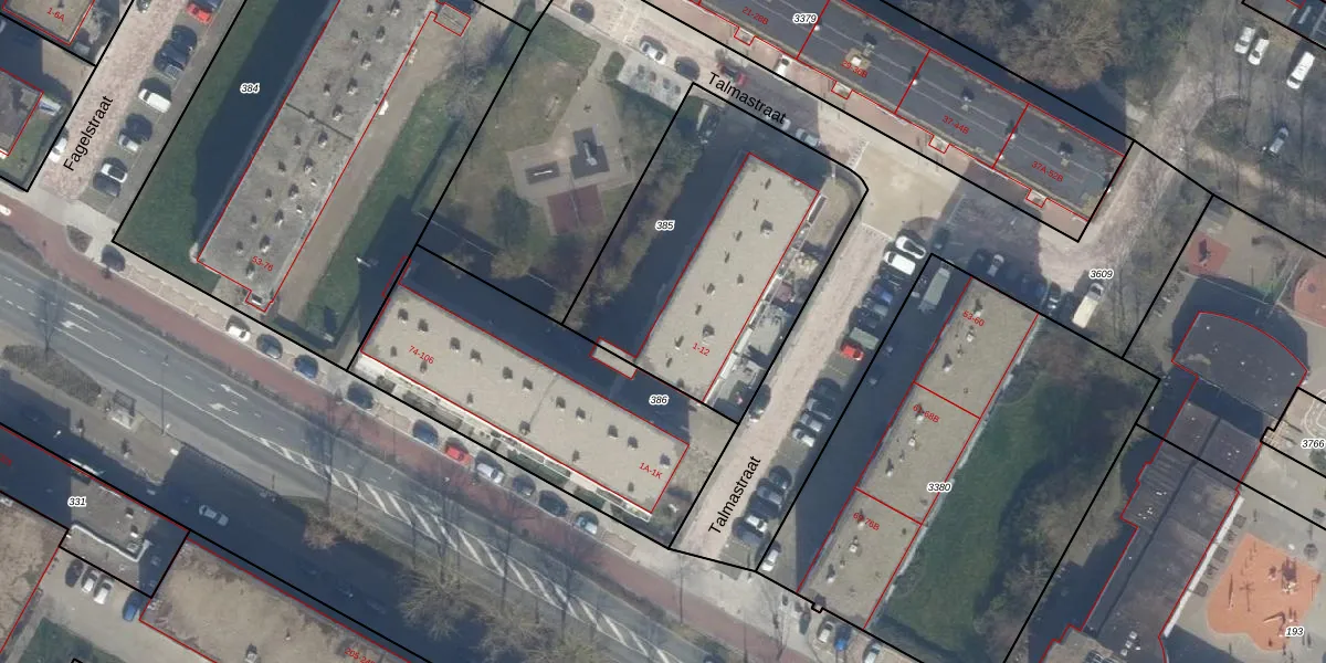 Talmastraat 4-G is gelegen op kadastraal perceel KWK01C385. Deze kadastrale aanduiding is uniek en wordt gebruikt door het Kadaster om eigendomsrechten en andere zakelijke rechten vast te leggen. Het perceel maakt onderdeel uit van de kadastrale gemeente Katwijk.