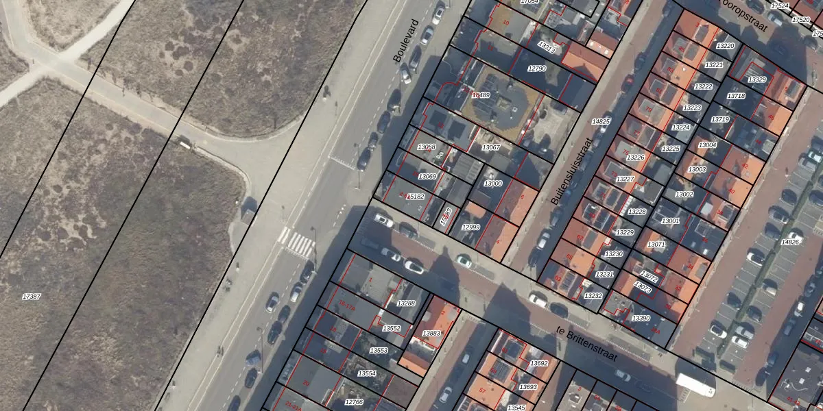Het perceel waarop het adres ligt is KWK01-A-15182. De afkorting 'KWK01' staat voor kadastrale gemeente Katwijk. De gemiddelde perceelgrootte in Katwijk is 1522,96 m². Dit perceel is kleiner: de perceeloppervlakte bedraagt 118 m². Het grootste perceel in de kadastrale gemeente is 5,24 km². Het kleinste perceel heeft een oppervlakte van 0 m². Er zijn 4 adressen aanwezig op het perceel. De laatste wijziging in het de Basisregistratie Kadaster (BRK) was op 29-03-2000.