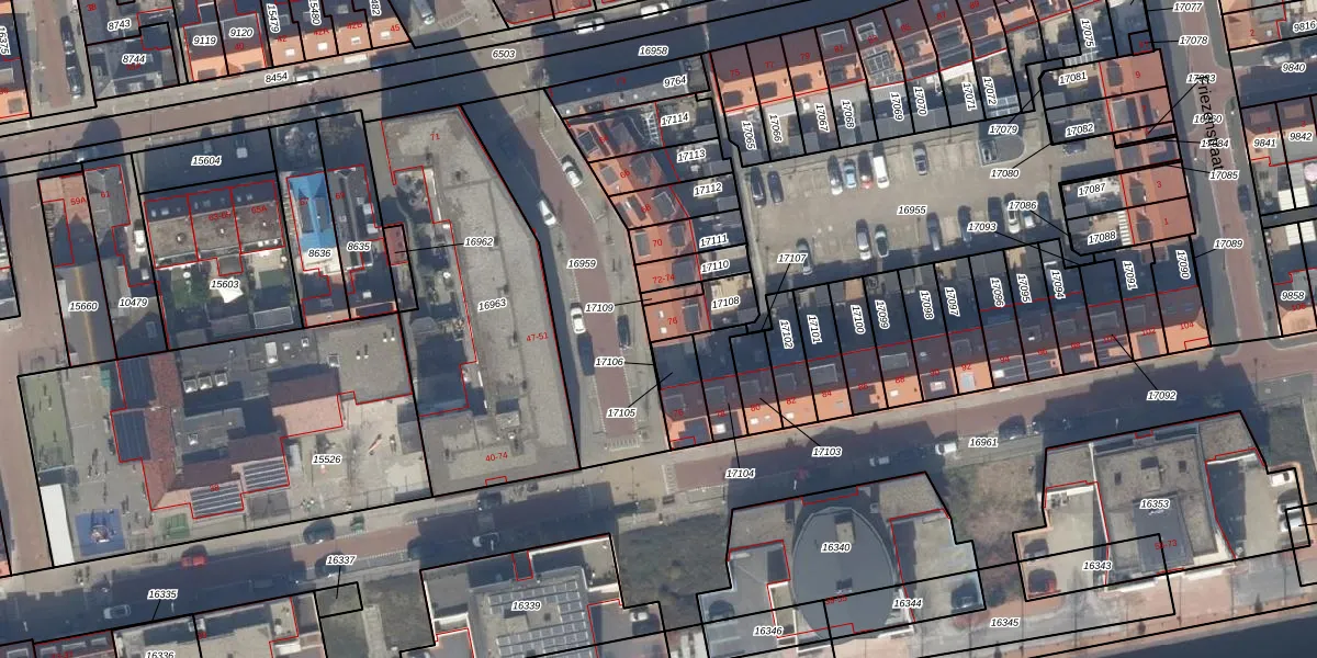 Gebruik de zoekbalk of klik op een perceel voor informatie over de adressen binnen dit perceel.
