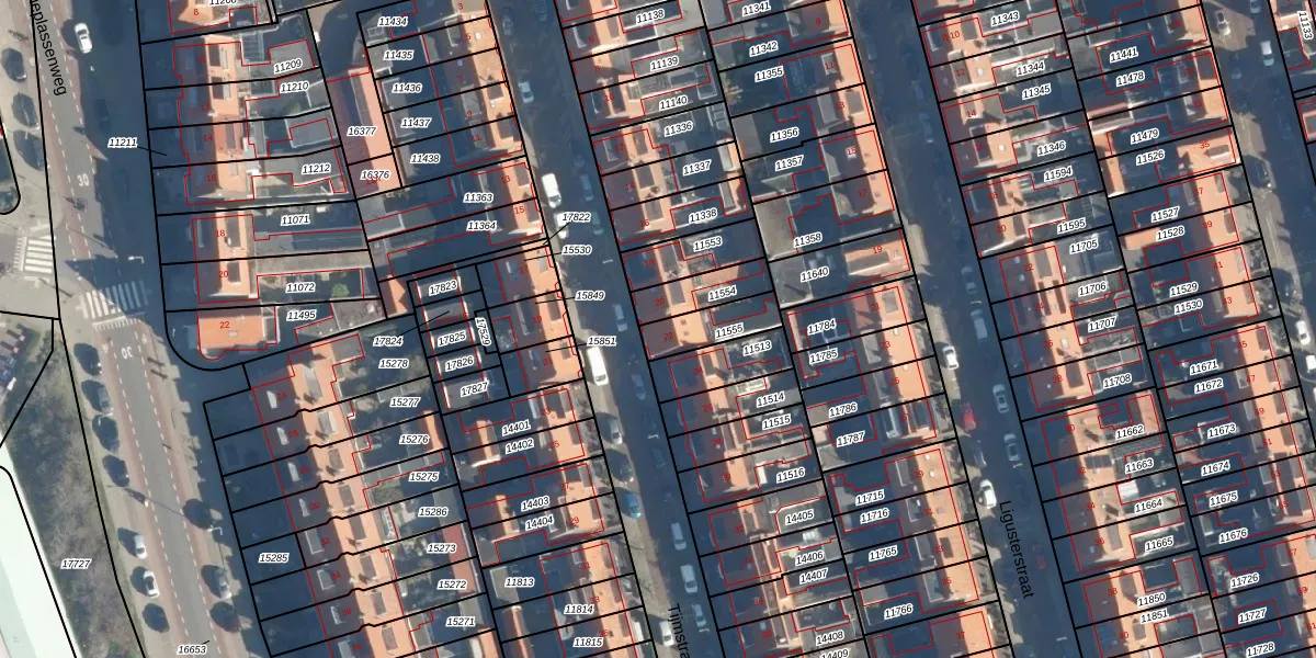 Het perceel waarop Tijmstraat 22 staat heeft een oppervlakte van 116 m². Dit is een middelgroot perceel. De perceeloppervlakte wordt geregistreerd door het Kadaster. Gedetailleerde informatie over de maten van dit perceel kunt u vinden in het rapport Kadastrale kaart met maatvoering van Tijmstraat 22.