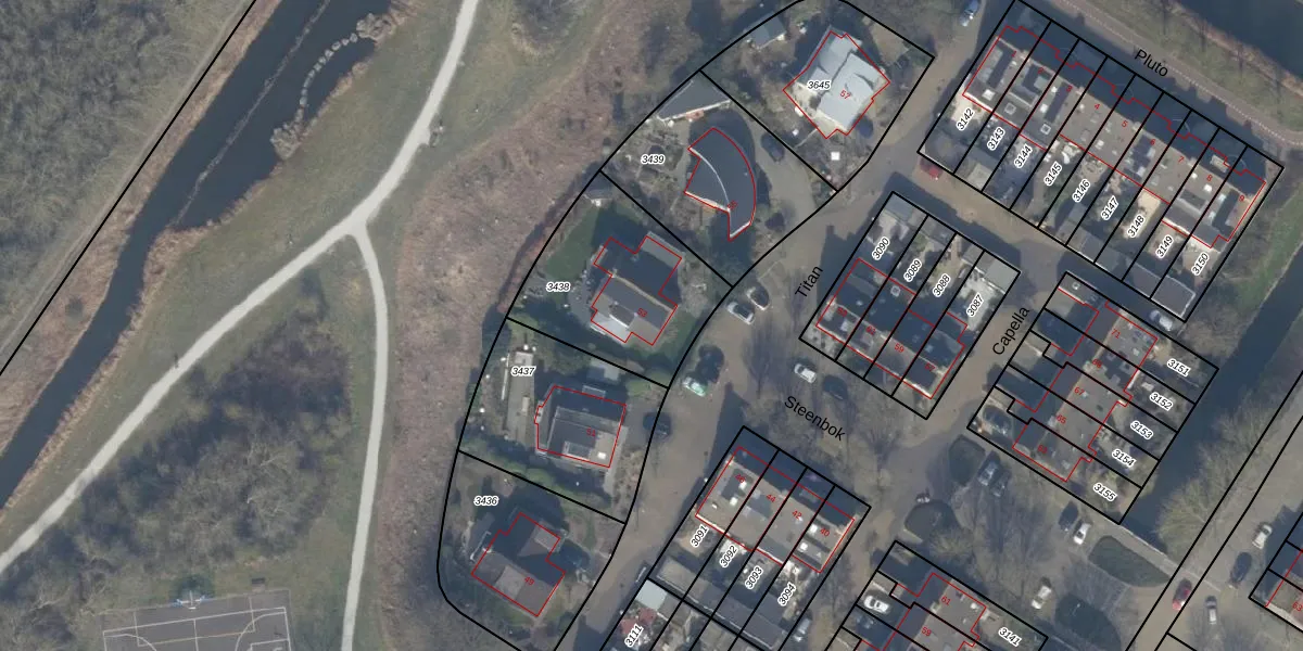 Het perceel waarop Titan 53 staat heeft een oppervlakte van 612 m². Dit is een groot perceel. De perceeloppervlakte wordt geregistreerd door het Kadaster. Gedetailleerde informatie over de maten van dit perceel kunt u vinden in het rapport Kadastrale kaart met maatvoering van Titan 53.