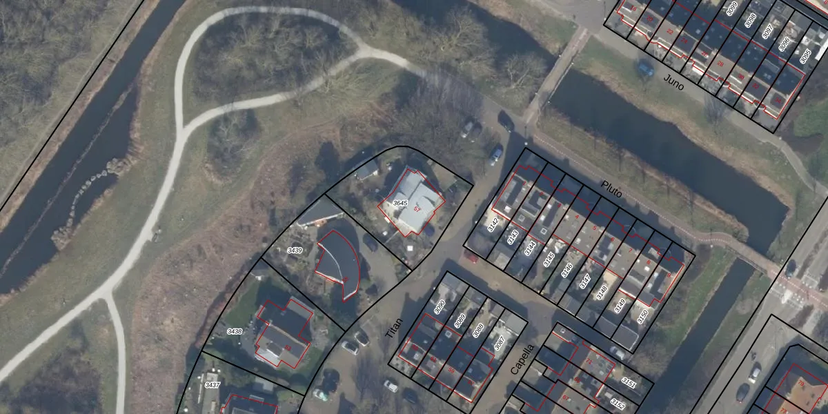 Het perceel waarop Titan 57 staat heeft een oppervlakte van 581 m². Dit is een groot perceel. De perceeloppervlakte wordt geregistreerd door het Kadaster. Gedetailleerde informatie over de maten van dit perceel kunt u vinden in het rapport Kadastrale kaart met maatvoering van Titan 57.