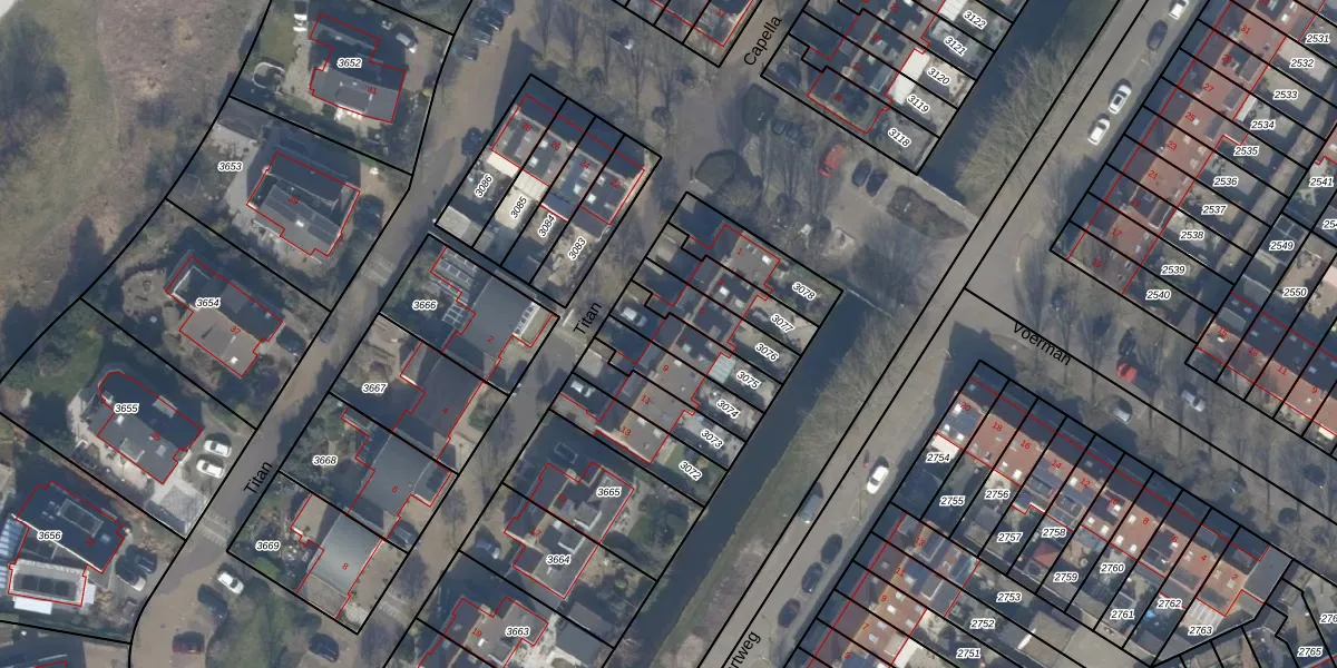 Het perceel waarop Titan 7 staat heeft een oppervlakte van 141 m². Dit is een middelgroot perceel. De perceeloppervlakte wordt geregistreerd door het Kadaster. Gedetailleerde informatie over de maten van dit perceel kunt u vinden in het rapport Kadastrale kaart met maatvoering van Titan 7.