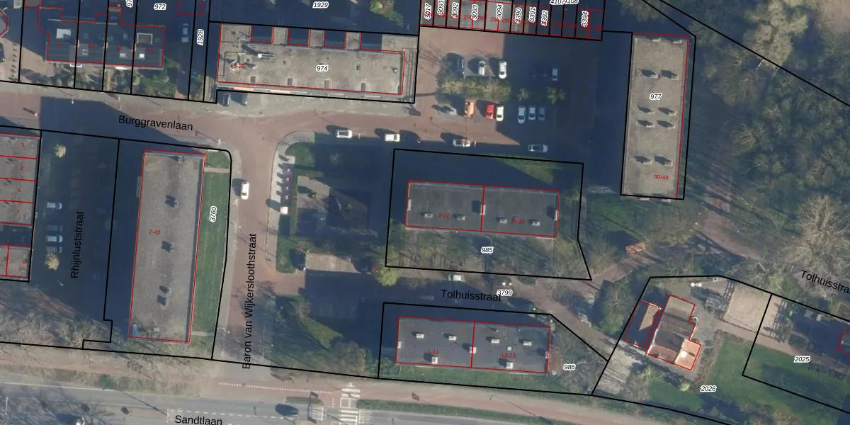 Tolhuisstraat 2 is gelegen op kadastraal perceel KWK01D985. Deze kadastrale aanduiding is uniek en wordt gebruikt door het Kadaster om eigendomsrechten en andere zakelijke rechten vast te leggen. Het perceel maakt onderdeel uit van de kadastrale gemeente Katwijk.