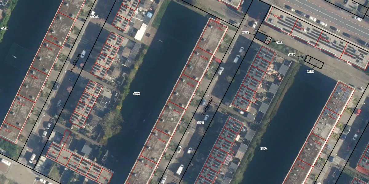 Het perceel waarop Tortellaan 25-A staat heeft een oppervlakte van 7714 m². Dit is een zeer groot perceel. De perceeloppervlakte wordt geregistreerd door het Kadaster. Gedetailleerde informatie over de maten van dit perceel kunt u vinden in het rapport Kadastrale kaart met maatvoering van Tortellaan 25-A.
