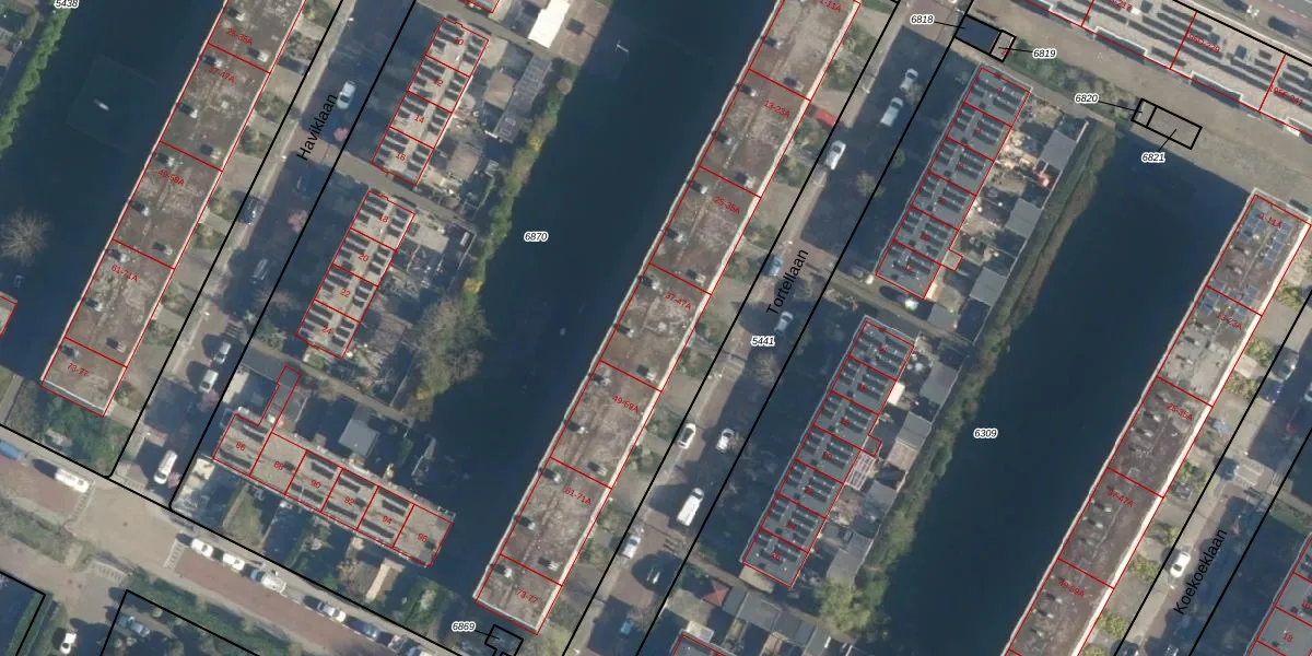 Het perceel waarop Tortellaan 47-A staat heeft een oppervlakte van 7714 m². Dit is een zeer groot perceel. De perceeloppervlakte wordt geregistreerd door het Kadaster. Gedetailleerde informatie over de maten van dit perceel kunt u vinden in het rapport Kadastrale kaart met maatvoering van Tortellaan 47-A.