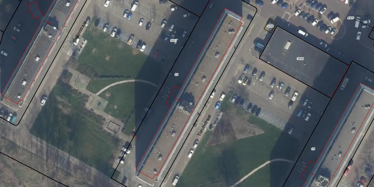 Het perceel waarop Treubstraat 1-J staat heeft een oppervlakte van 2935 m². Dit is een zeer groot perceel. De perceeloppervlakte wordt geregistreerd door het Kadaster. Gedetailleerde informatie over de maten van dit perceel kunt u vinden in het rapport Kadastrale kaart met maatvoering van Treubstraat 1-J.