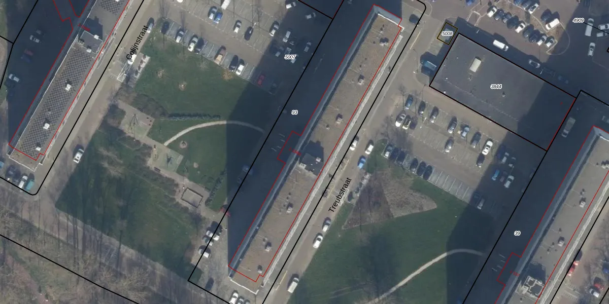 Het perceel waarop Treubstraat 46 staat heeft een oppervlakte van 2935 m². Dit is een zeer groot perceel. De perceeloppervlakte wordt geregistreerd door het Kadaster. Gedetailleerde informatie over de maten van dit perceel kunt u vinden in het rapport Kadastrale kaart met maatvoering van Treubstraat 46.