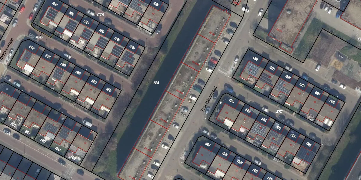 Het perceel waarop Troelstrastraat 58 staat heeft een oppervlakte van 3685 m². Dit is een zeer groot perceel. De perceeloppervlakte wordt geregistreerd door het Kadaster. Gedetailleerde informatie over de maten van dit perceel kunt u vinden in het rapport Kadastrale kaart met maatvoering van Troelstrastraat 58.