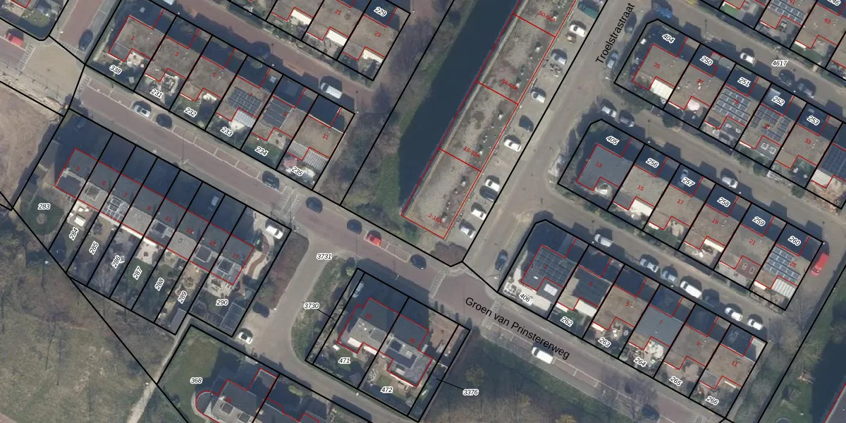Het perceel waarop Troelstrastraat 8 staat heeft een oppervlakte van 3685 m². Dit is een zeer groot perceel. De perceeloppervlakte wordt geregistreerd door het Kadaster. Gedetailleerde informatie over de maten van dit perceel kunt u vinden in het rapport Kadastrale kaart met maatvoering van Troelstrastraat 8.