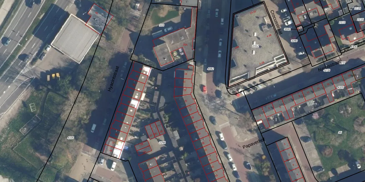 Het perceel waarop Tulpstraat 23 staat heeft een oppervlakte van 4061 m². Dit is een zeer groot perceel. De perceeloppervlakte wordt geregistreerd door het Kadaster. Gedetailleerde informatie over de maten van dit perceel kunt u vinden in het rapport Kadastrale kaart met maatvoering van Tulpstraat 23.