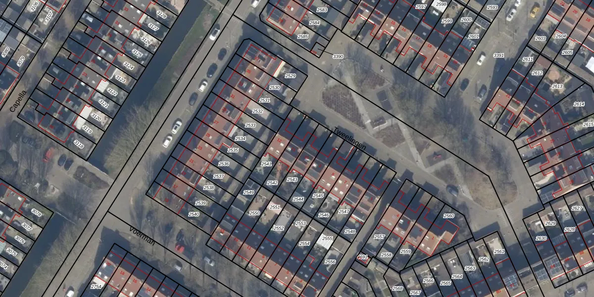 Gebruik de zoekbalk of klik op een perceel voor informatie over de adressen binnen dit perceel.