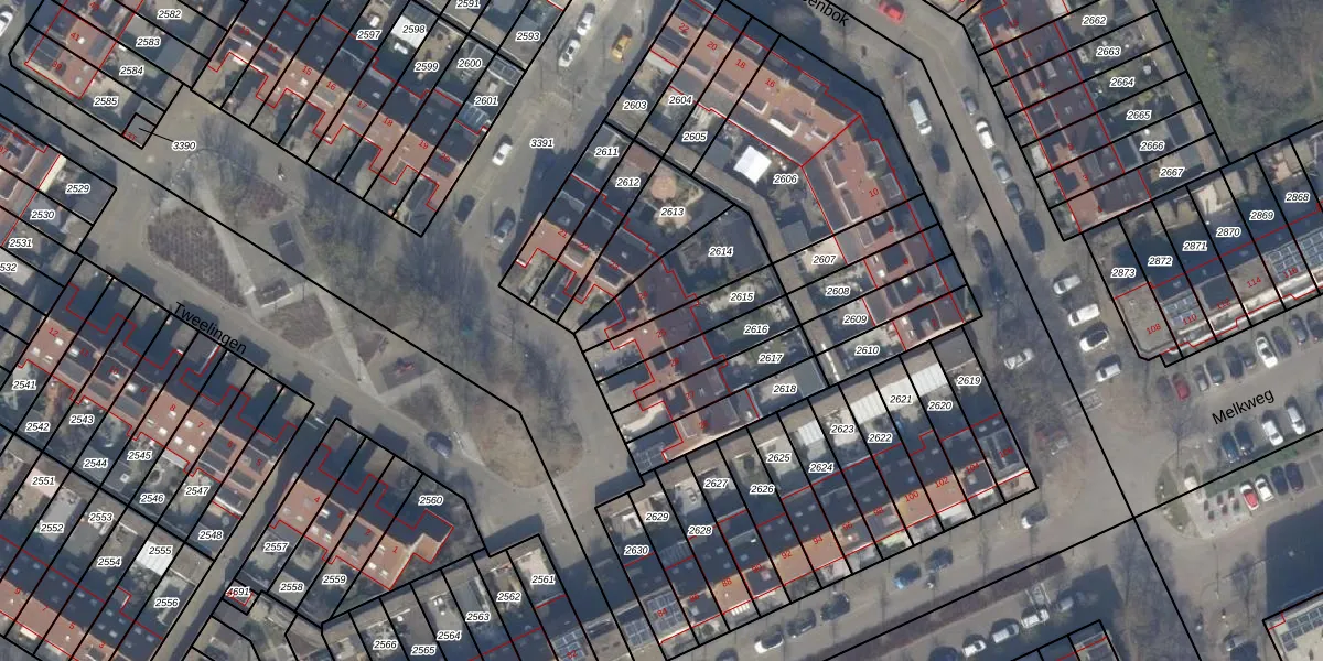 Gebruik de zoekbalk of klik op een perceel voor informatie over de adressen binnen dit perceel.