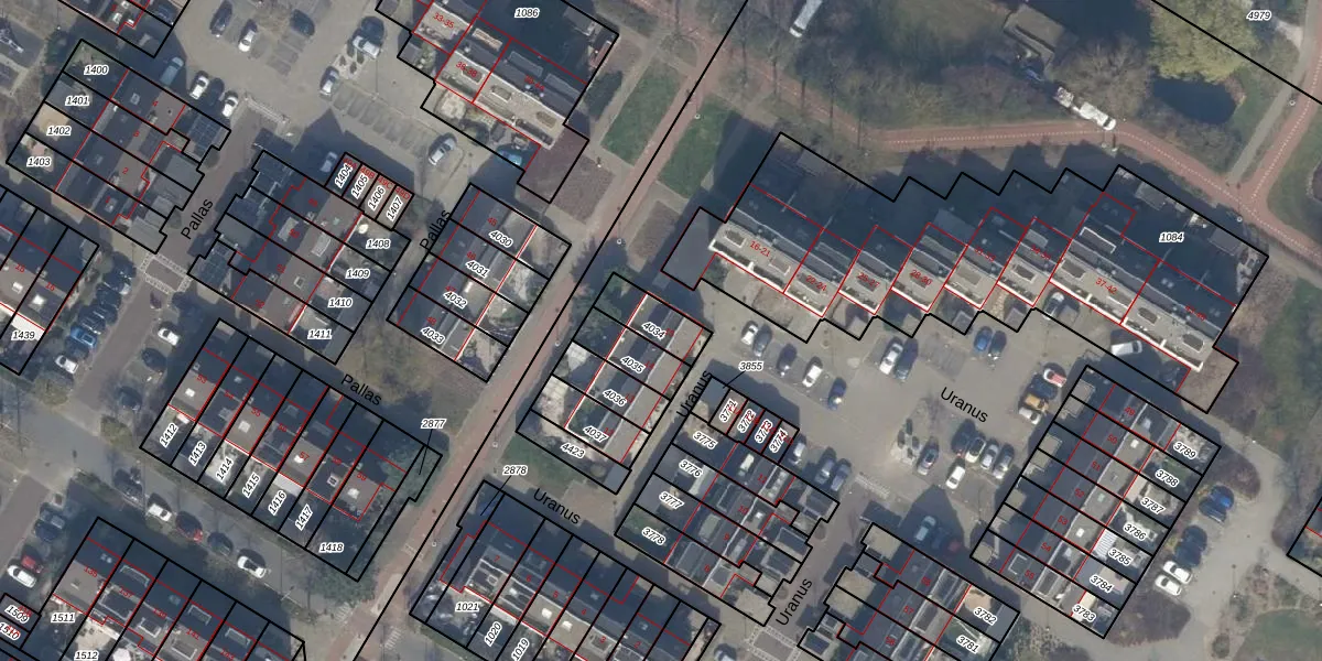 Gebruik de zoekbalk of klik op een perceel voor informatie over de adressen binnen dit perceel.