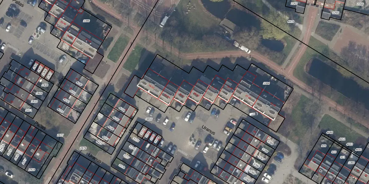 Het perceel waarop Uranus 26 staat heeft een oppervlakte van 1922 m². Dit is een zeer groot perceel. De perceeloppervlakte wordt geregistreerd door het Kadaster. Gedetailleerde informatie over de maten van dit perceel kunt u vinden in het rapport Kadastrale kaart met maatvoering van Uranus 26.