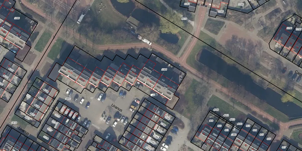 Het perceel waarop Uranus 42 staat heeft een oppervlakte van 1922 m². Dit is een zeer groot perceel. De perceeloppervlakte wordt geregistreerd door het Kadaster. Gedetailleerde informatie over de maten van dit perceel kunt u vinden in het rapport Kadastrale kaart met maatvoering van Uranus 42.