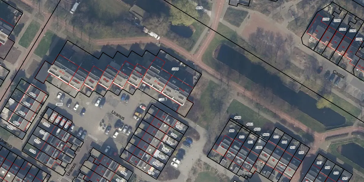 Het perceel waarop Uranus 46 staat heeft een oppervlakte van 1922 m². Dit is een zeer groot perceel. De perceeloppervlakte wordt geregistreerd door het Kadaster. Gedetailleerde informatie over de maten van dit perceel kunt u vinden in het rapport Kadastrale kaart met maatvoering van Uranus 46.