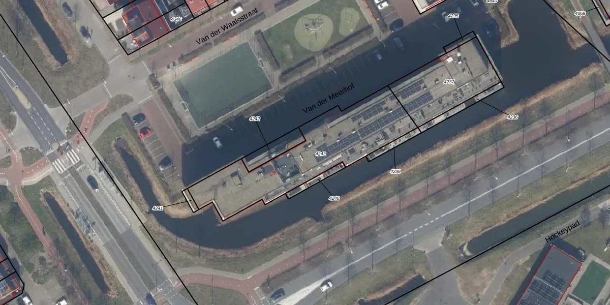 Het perceel waarop Van der Meerhof 11 staat heeft een oppervlakte van 1098 m². Dit is een zeer groot perceel. De perceeloppervlakte wordt geregistreerd door het Kadaster. Gedetailleerde informatie over de maten van dit perceel kunt u vinden in het rapport Kadastrale kaart met maatvoering van Van der Meerhof 11.