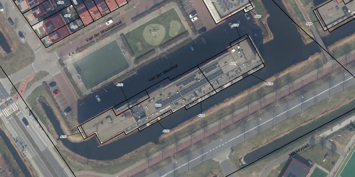 Het perceel waarop Van der Meerhof 67 staat heeft een oppervlakte van 1098 m². Dit is een zeer groot perceel. De perceeloppervlakte wordt geregistreerd door het Kadaster. Gedetailleerde informatie over de maten van dit perceel kunt u vinden in het rapport Kadastrale kaart met maatvoering van Van der Meerhof 67.