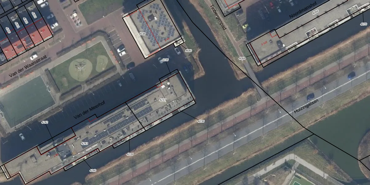 Het perceel waarop Van der Meerhof 69 staat heeft een oppervlakte van 541 m². Dit is een groot perceel. De perceeloppervlakte wordt geregistreerd door het Kadaster. Gedetailleerde informatie over de maten van dit perceel kunt u vinden in het rapport Kadastrale kaart met maatvoering van Van der Meerhof 69.