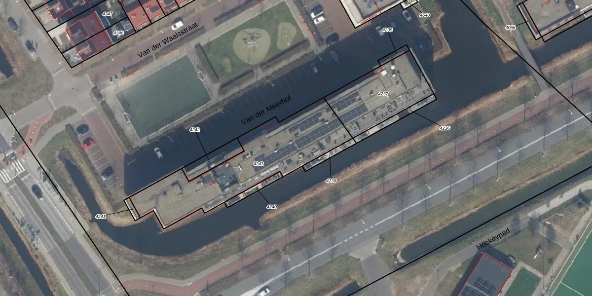 Het perceel waarop Van der Meerhof 83 staat heeft een oppervlakte van 1098 m². Dit is een zeer groot perceel. De perceeloppervlakte wordt geregistreerd door het Kadaster. Gedetailleerde informatie over de maten van dit perceel kunt u vinden in het rapport Kadastrale kaart met maatvoering van Van der Meerhof 83.