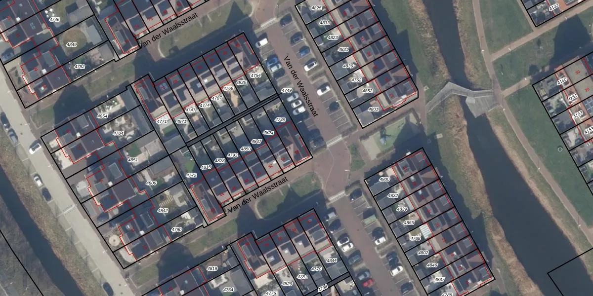 Van der Waalsstraat 56 is gelegen op kadastraal perceel KWK01C4748. Deze kadastrale aanduiding is uniek en wordt gebruikt door het Kadaster om eigendomsrechten en andere zakelijke rechten vast te leggen. Het perceel maakt onderdeel uit van de kadastrale gemeente Katwijk.