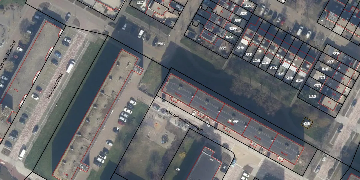 van Slingelandtstraat 13-B is gelegen op kadastraal perceel KWK01C270. Deze kadastrale aanduiding is uniek en wordt gebruikt door het Kadaster om eigendomsrechten en andere zakelijke rechten vast te leggen. Het perceel maakt onderdeel uit van de kadastrale gemeente Katwijk.