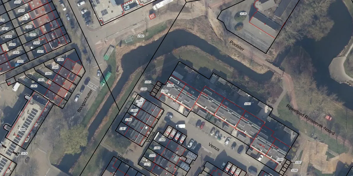Het perceel waarop Venus 19 staat heeft een oppervlakte van 2025 m². Dit is een zeer groot perceel. De perceeloppervlakte wordt geregistreerd door het Kadaster. Gedetailleerde informatie over de maten van dit perceel kunt u vinden in het rapport Kadastrale kaart met maatvoering van Venus 19.