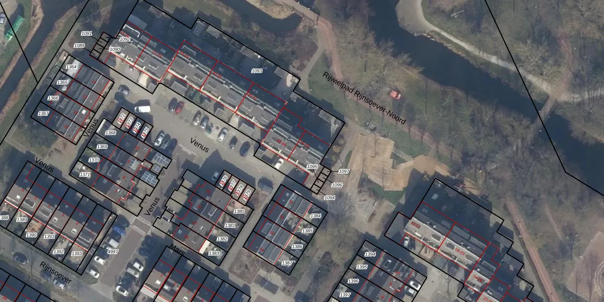 Het perceel waarop Venus 50 staat heeft een oppervlakte van 2025 m². Dit is een zeer groot perceel. De perceeloppervlakte wordt geregistreerd door het Kadaster. Gedetailleerde informatie over de maten van dit perceel kunt u vinden in het rapport Kadastrale kaart met maatvoering van Venus 50.