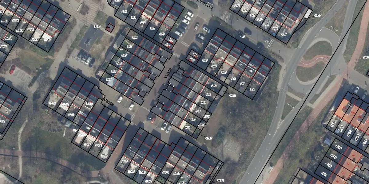 Het perceel waarop Vesta 23 staat heeft een oppervlakte van 140 m². Dit is een middelgroot perceel. De perceeloppervlakte wordt geregistreerd door het Kadaster. Gedetailleerde informatie over de maten van dit perceel kunt u vinden in het rapport Kadastrale kaart met maatvoering van Vesta 23.