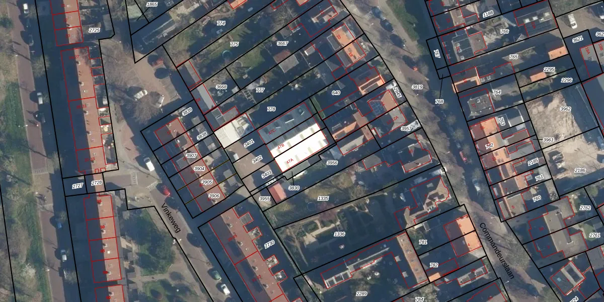 Vinkeweg 47-A is gelegen op kadastraal perceel KWK01D3403. Deze kadastrale aanduiding is uniek en wordt gebruikt door het Kadaster om eigendomsrechten en andere zakelijke rechten vast te leggen. Het perceel maakt onderdeel uit van de kadastrale gemeente Katwijk.