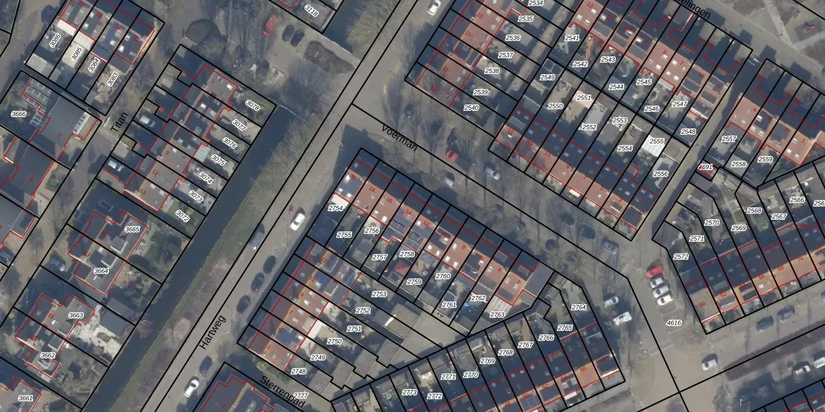 Gebruik de zoekbalk of klik op een perceel voor informatie over de adressen binnen dit perceel.