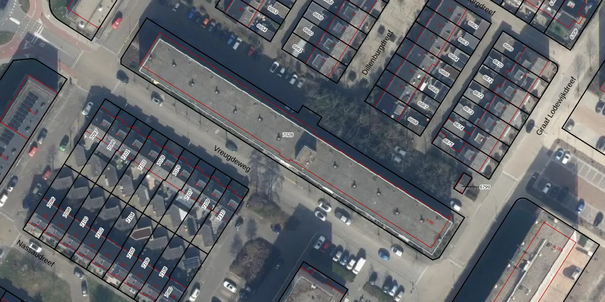 Het perceel waarop Vreugdeweg 30 staat heeft een oppervlakte van 2188 m². Dit is een zeer groot perceel. De perceeloppervlakte wordt geregistreerd door het Kadaster. Gedetailleerde informatie over de maten van dit perceel kunt u vinden in het rapport Kadastrale kaart met maatvoering van Vreugdeweg 30.