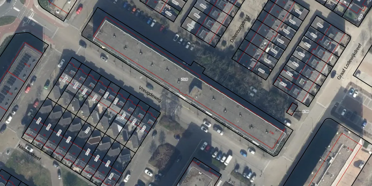 Vreugdeweg 54 is gelegen op kadastraal perceel KWK01B7028. Deze kadastrale aanduiding is uniek en wordt gebruikt door het Kadaster om eigendomsrechten en andere zakelijke rechten vast te leggen. Het perceel maakt onderdeel uit van de kadastrale gemeente Katwijk.