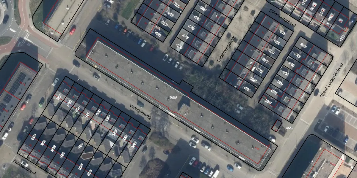 Het perceel waarop Vreugdeweg 90 staat heeft een oppervlakte van 2188 m². Dit is een zeer groot perceel. De perceeloppervlakte wordt geregistreerd door het Kadaster. Gedetailleerde informatie over de maten van dit perceel kunt u vinden in het rapport Kadastrale kaart met maatvoering van Vreugdeweg 90.