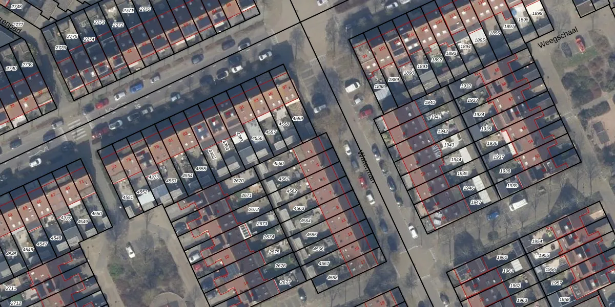 Gebruik de zoekbalk of klik op een perceel voor informatie over de adressen binnen dit perceel.