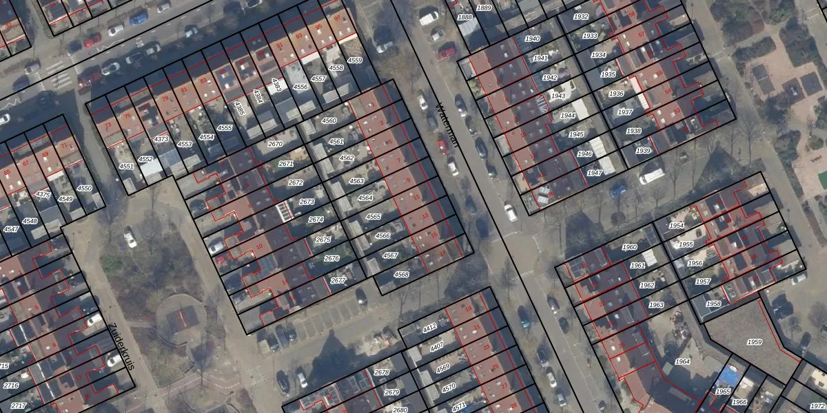 Gebruik de zoekbalk of klik op een perceel voor informatie over de adressen binnen dit perceel.