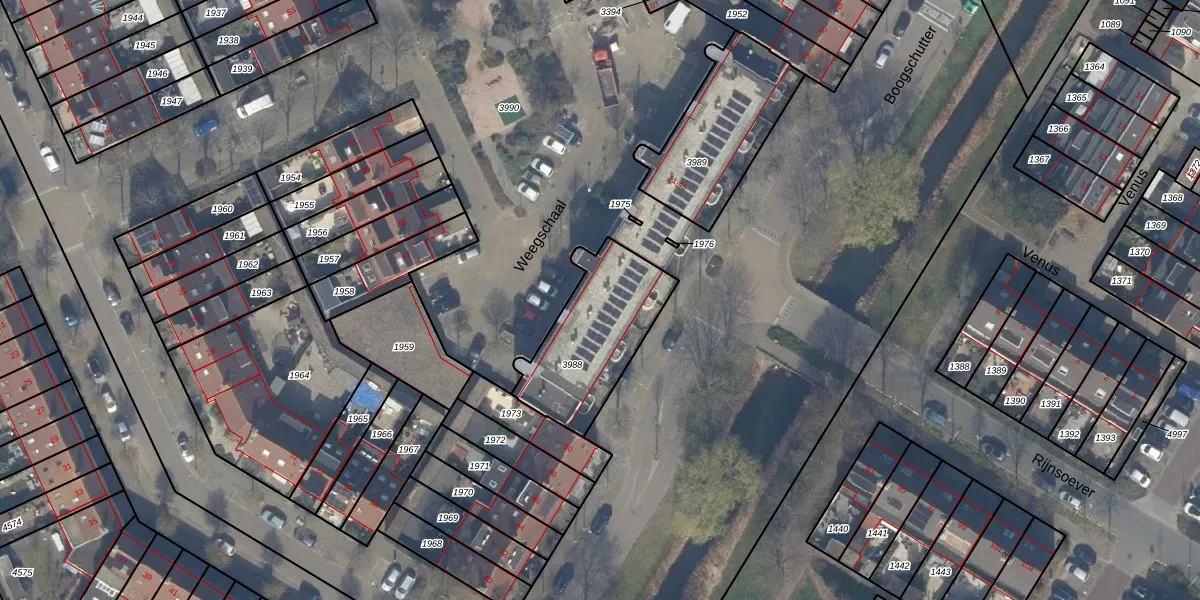 Het perceel waarop Weegschaal 39 staat heeft een oppervlakte van 448 m². Dit is een groot perceel. De perceeloppervlakte wordt geregistreerd door het Kadaster. Gedetailleerde informatie over de maten van dit perceel kunt u vinden in het rapport Kadastrale kaart met maatvoering van Weegschaal 39.