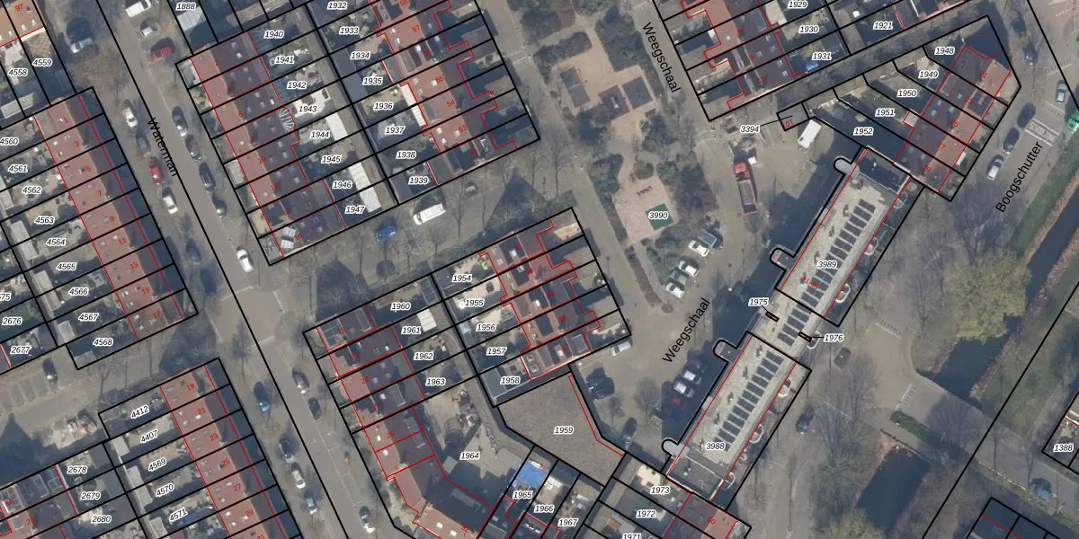 Gebruik de zoekbalk of klik op een perceel voor informatie over de adressen binnen dit perceel.