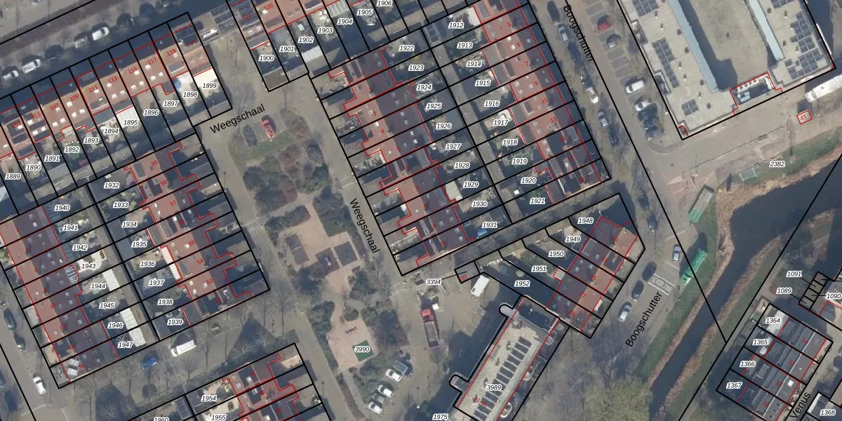 Gebruik de zoekbalk of klik op een perceel voor informatie over de adressen binnen dit perceel.