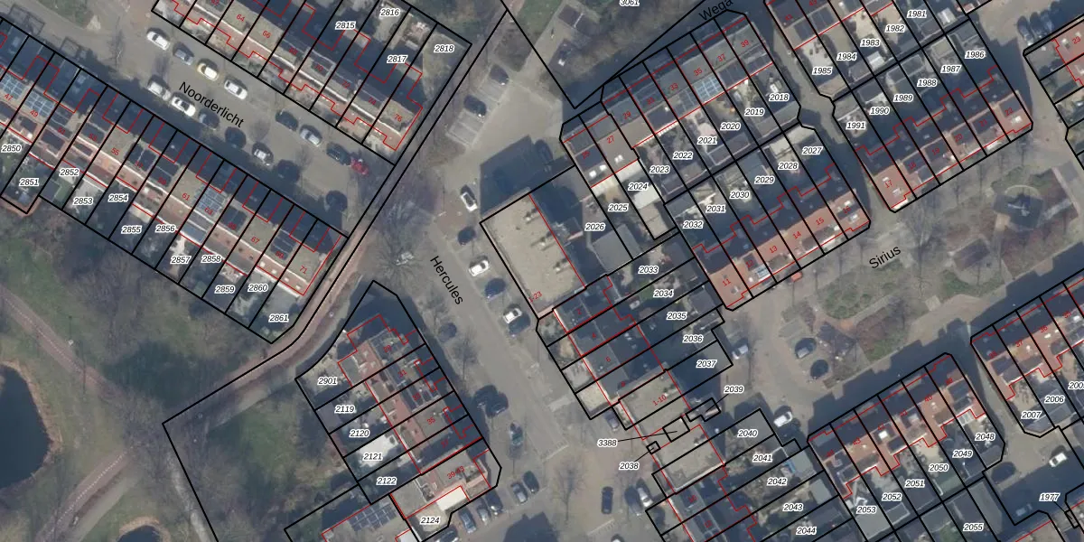 Het perceel waarop Wega 13 staat heeft een oppervlakte van 424 m². Dit is een groot perceel. De perceeloppervlakte wordt geregistreerd door het Kadaster. Gedetailleerde informatie over de maten van dit perceel kunt u vinden in het rapport Kadastrale kaart met maatvoering van Wega 13.