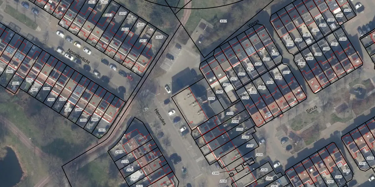 Het perceel waarop Wega 17 staat heeft een oppervlakte van 424 m². Dit is een groot perceel. De perceeloppervlakte wordt geregistreerd door het Kadaster. Gedetailleerde informatie over de maten van dit perceel kunt u vinden in het rapport Kadastrale kaart met maatvoering van Wega 17.
