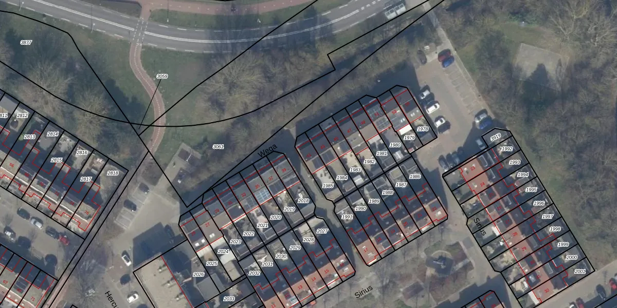 Gebruik de zoekbalk of klik op een perceel voor informatie over de adressen binnen dit perceel.