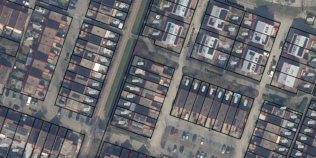 Gebruik de zoekbalk of klik op een perceel voor informatie over de adressen binnen dit perceel.