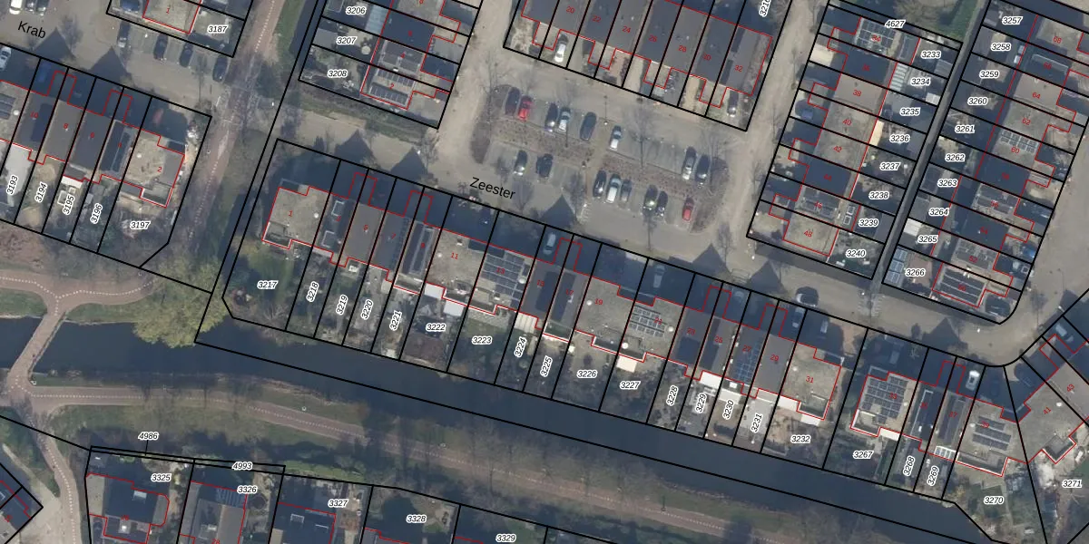 Het perceel waarop Zeester 15 staat heeft een oppervlakte van 166 m². Dit is een middelgroot perceel. De perceeloppervlakte wordt geregistreerd door het Kadaster. Gedetailleerde informatie over de maten van dit perceel kunt u vinden in het rapport Kadastrale kaart met maatvoering van Zeester 15.