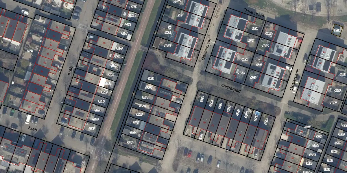 Gebruik de zoekbalk of klik op een perceel voor informatie over de adressen binnen dit perceel.