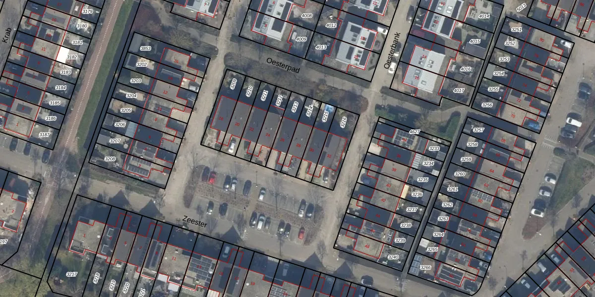 Gebruik de zoekbalk of klik op een perceel voor informatie over de adressen binnen dit perceel.