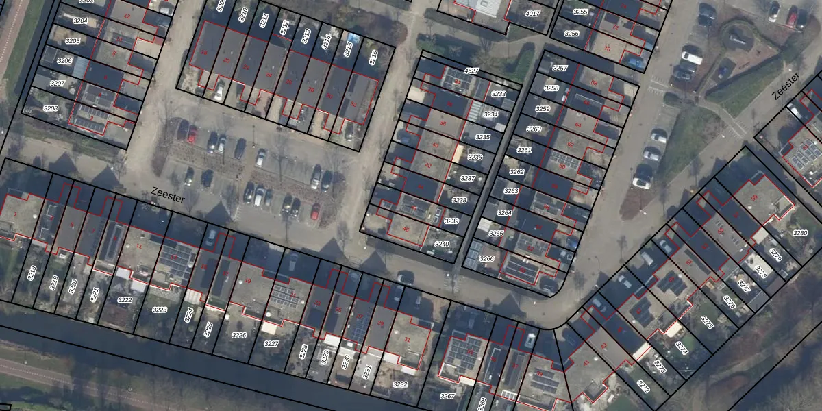 Gebruik de zoekbalk of klik op een perceel voor informatie over de adressen binnen dit perceel.